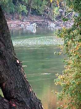 This offers a larger view of the river we were looking at. You can even see someone kayaking in it, and yet another bridge in the background. This water must have been terribly pesky to folks in earlier times. |